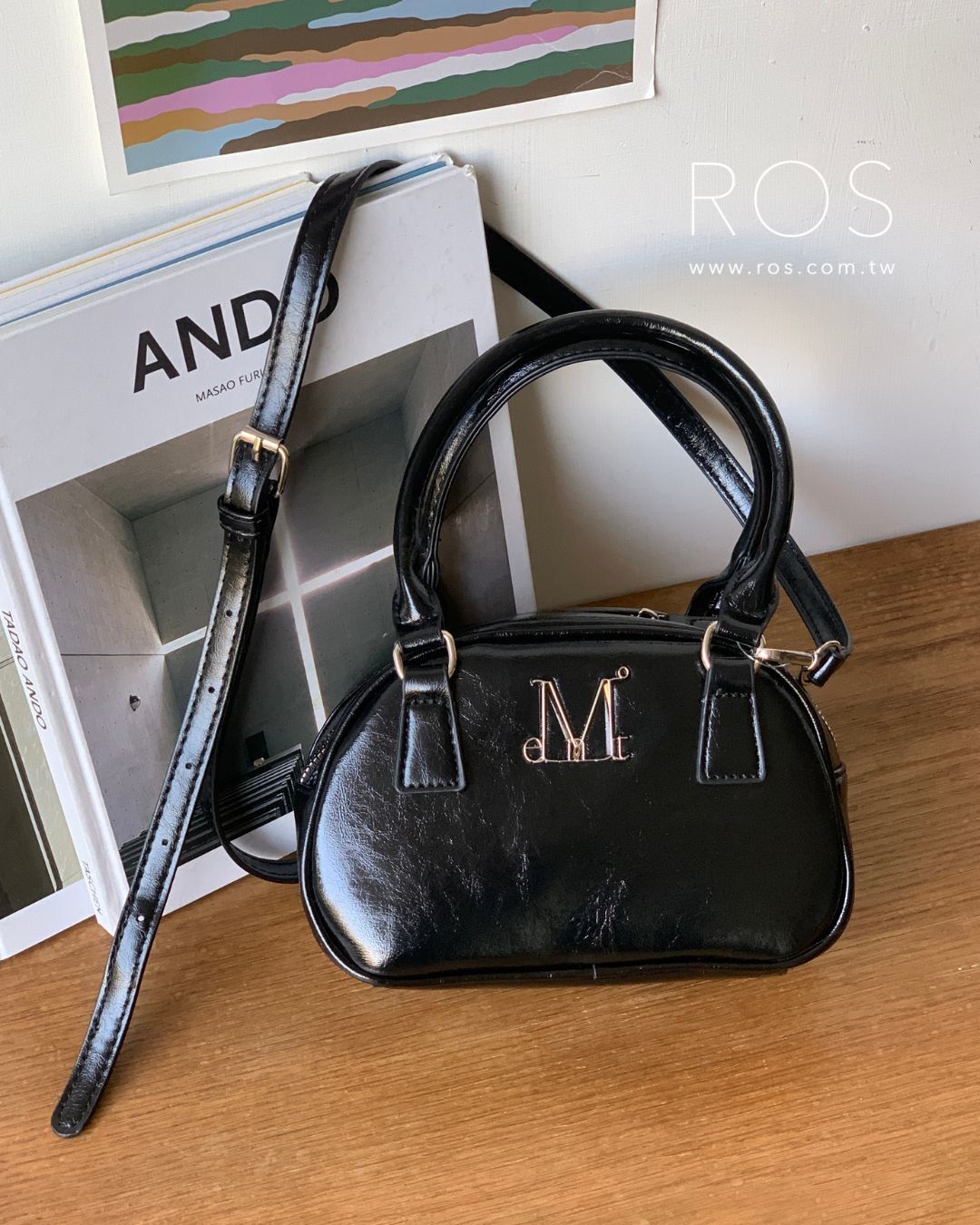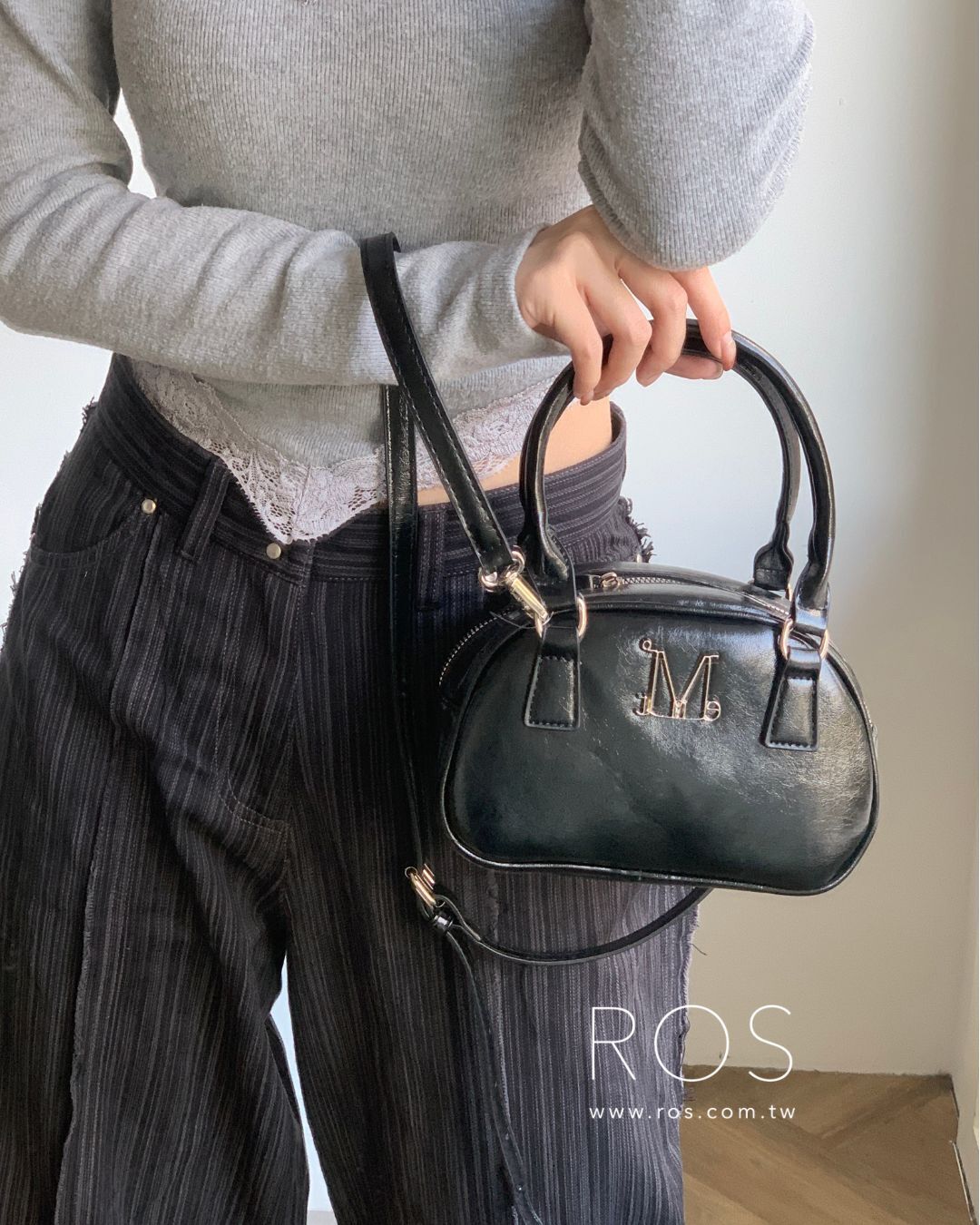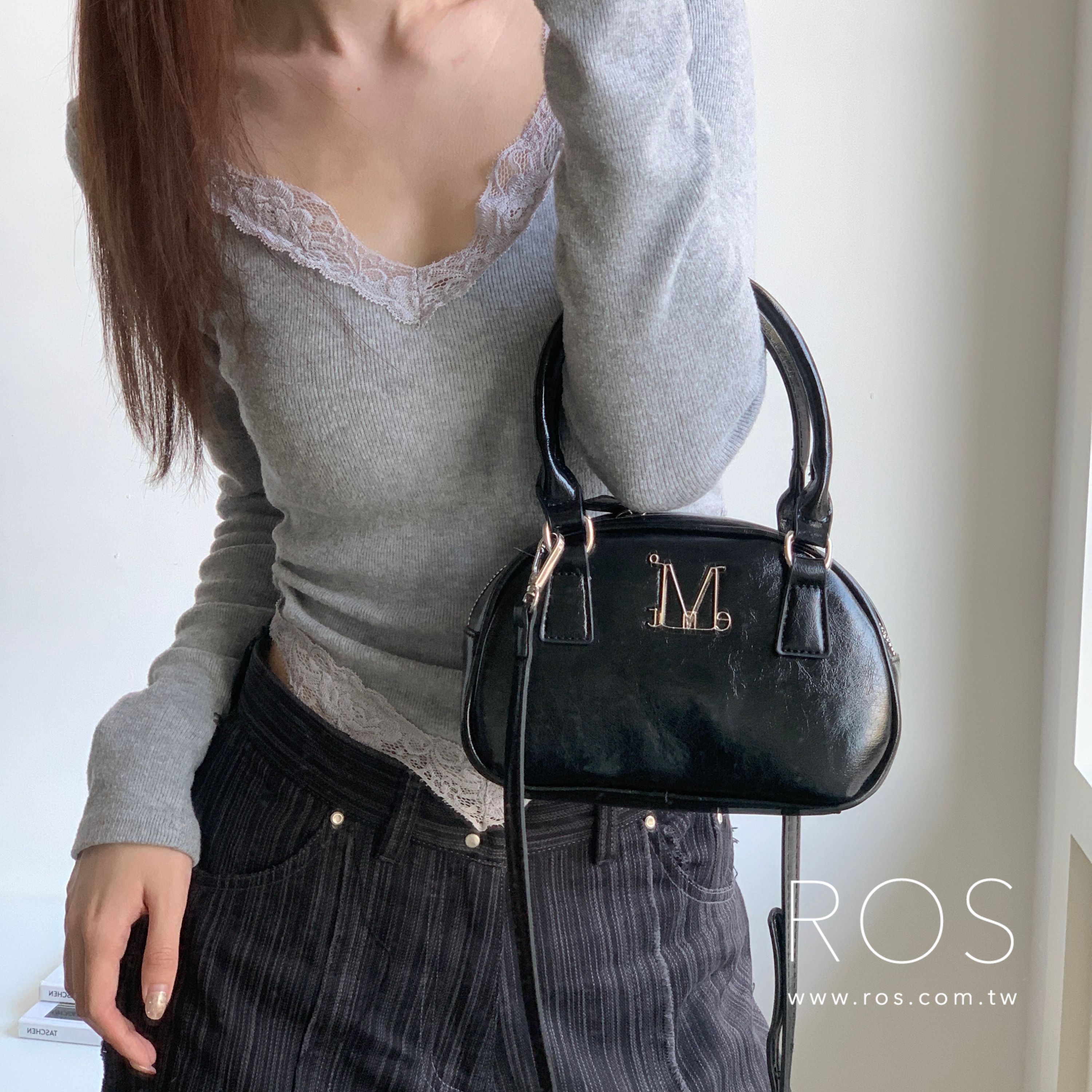 🇰🇷韓國 MUCENT 金屬Logo 手提肩背包 黑