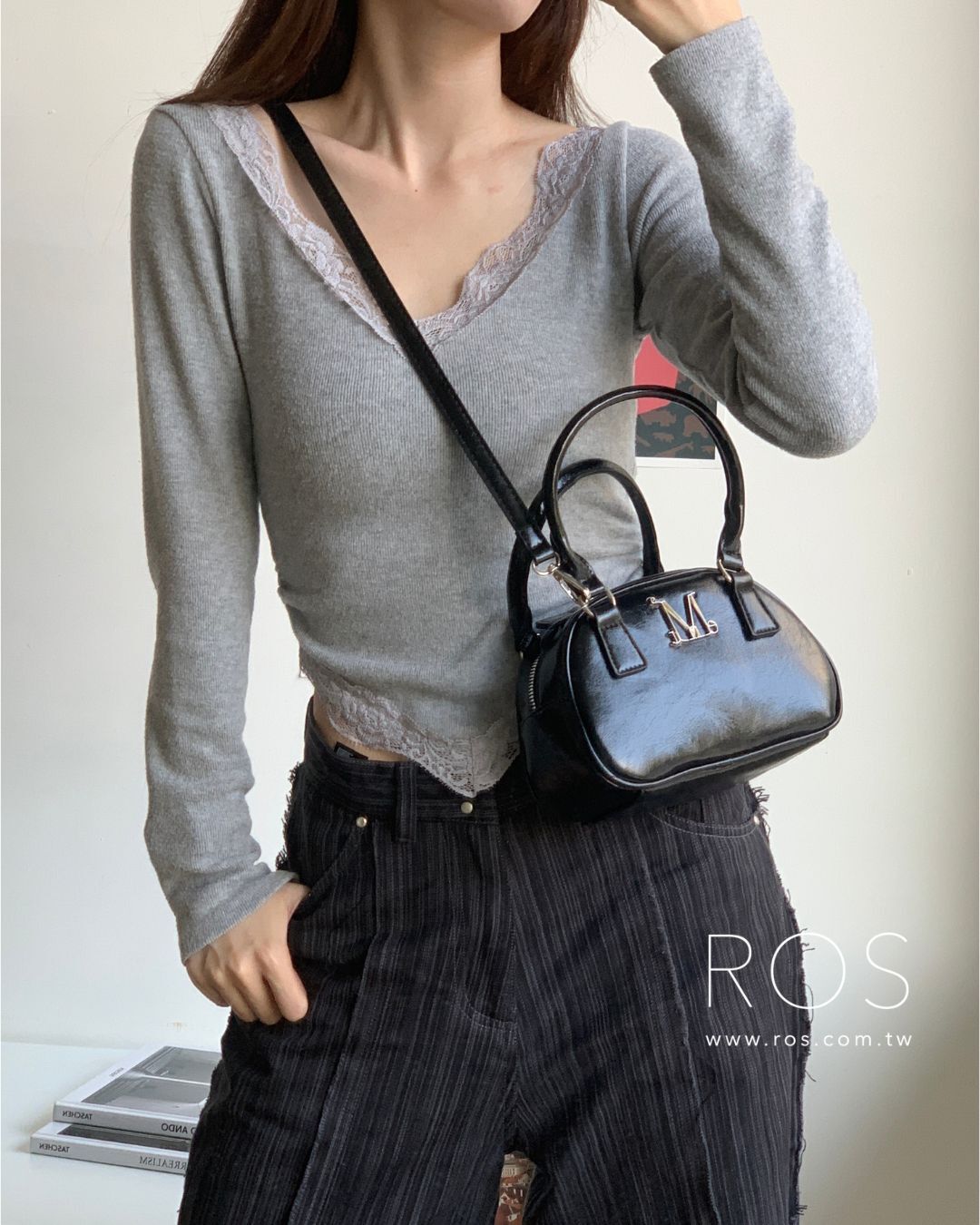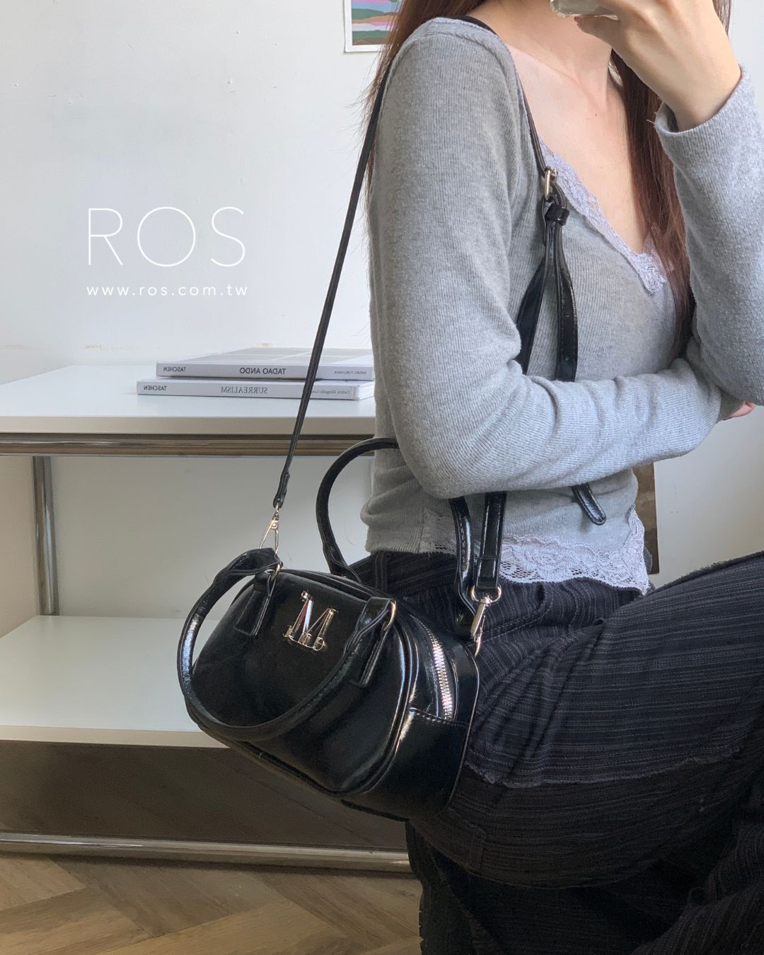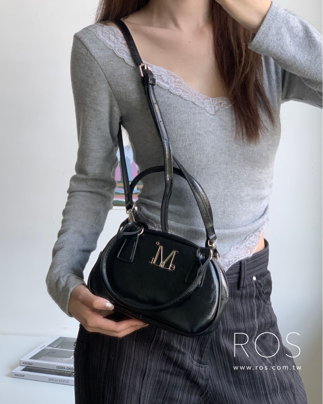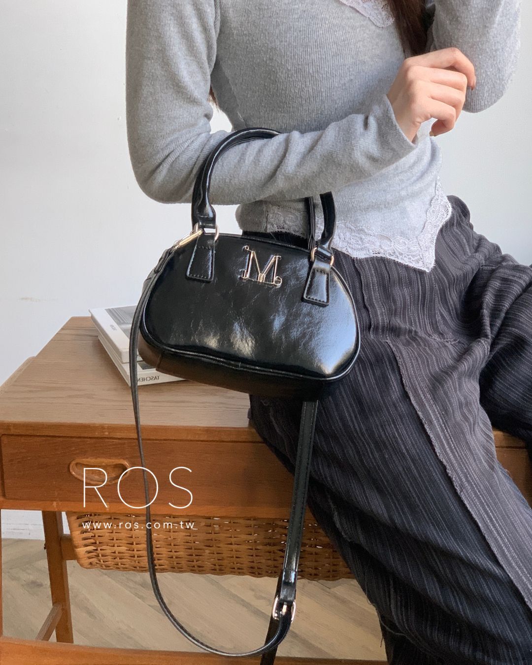 🇰🇷韓國 MUCENT 金屬Logo 手提肩背包 黑